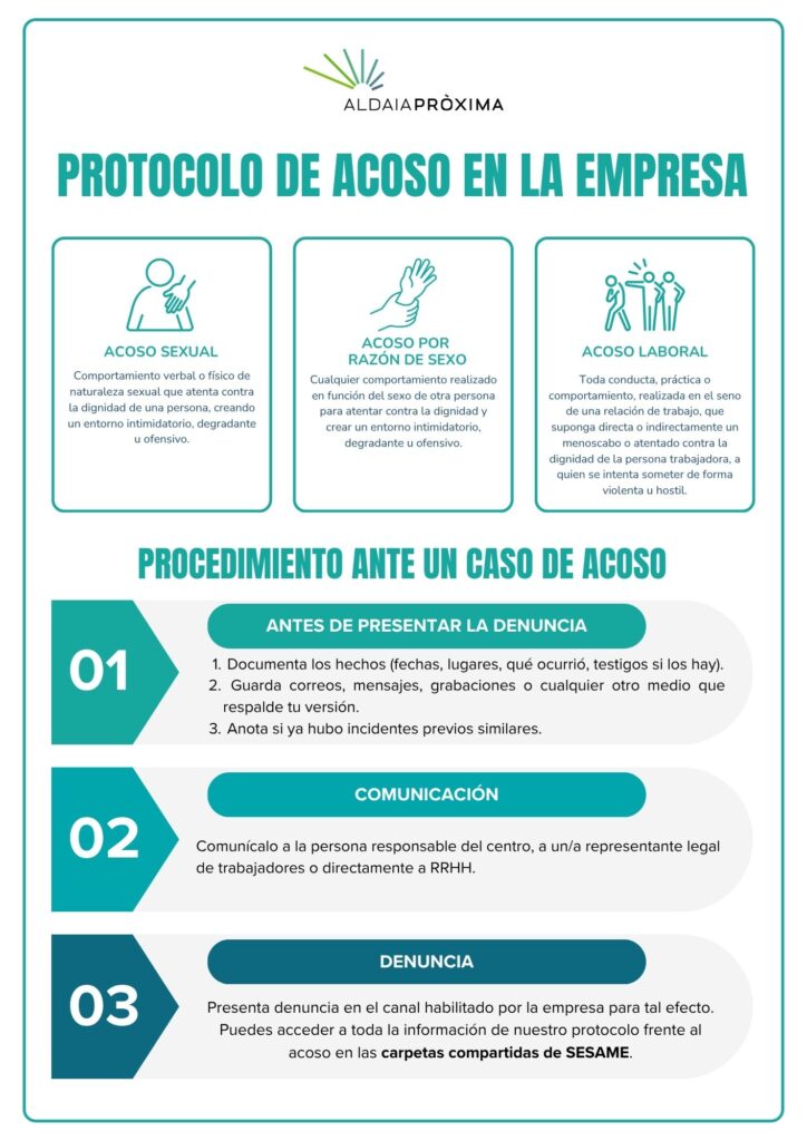 En este apartado se recogen los protocolos de igualdad y de prevención del acoso laboral, instrumentos fundamentales para garantizar un entorno de trabajo respetuoso, inclusivo y libre de cualquier forma de discriminación. La empresa reafirma así su compromiso con la igualdad de oportunidades entre mujeres y hombres, así como con la prevención, detección y actuación frente a situaciones de acoso, promoviendo un clima laboral basado en el respeto, la diversidad y la dignidad de todas las personas que forman parte de la organización.